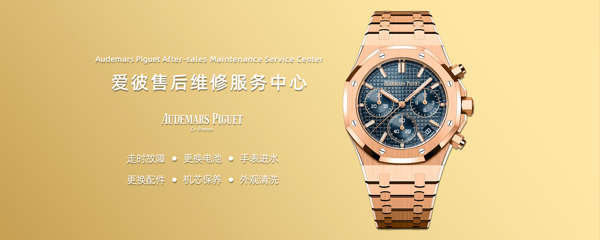 作为官方售后服务中心,我们拥有爱彼原厂零部件的供应渠道